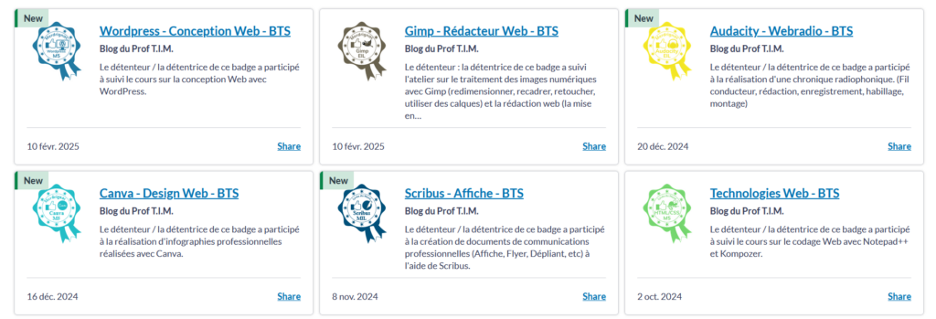 Avec toutes les compétences acquérit, nous avons gagné des badges.