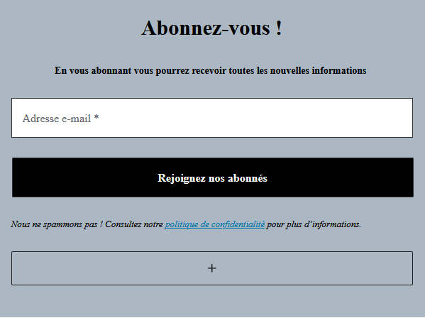 En bas de la page, j’ai mis un formulaire pour s’abonner à ma newsletter.