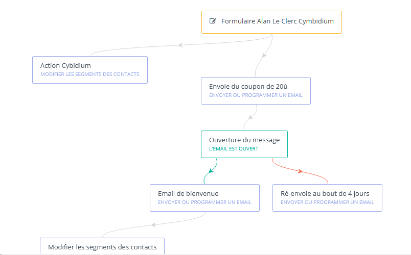 Après sur mautic, nous avons fait un formulaire pour qu’automatiquement des mails de relancement s’envoie au cas où si la personne inscrite oublie de venir profiter de la promotion.